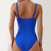 Sexy Square Neck One-piece Bikini Summer New Solid Color Pleated Design Swimsuit Beach Vacation Womens Clothing
